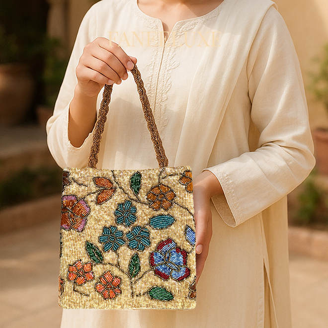 Handmade beaded bags aren't just for weddings or mehndis—they're incredibly versatile and can be styled beautifully for both Eastern and fusion looks. Here are five ways Pakistani women can carry them with flair:
