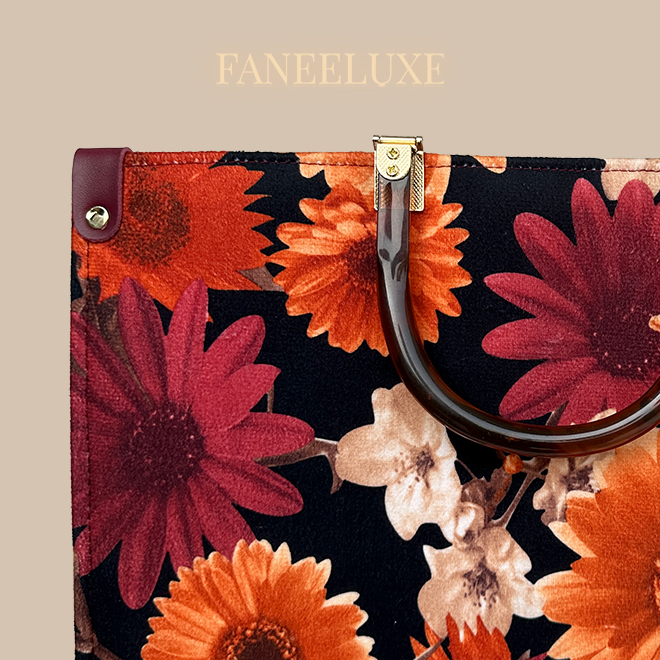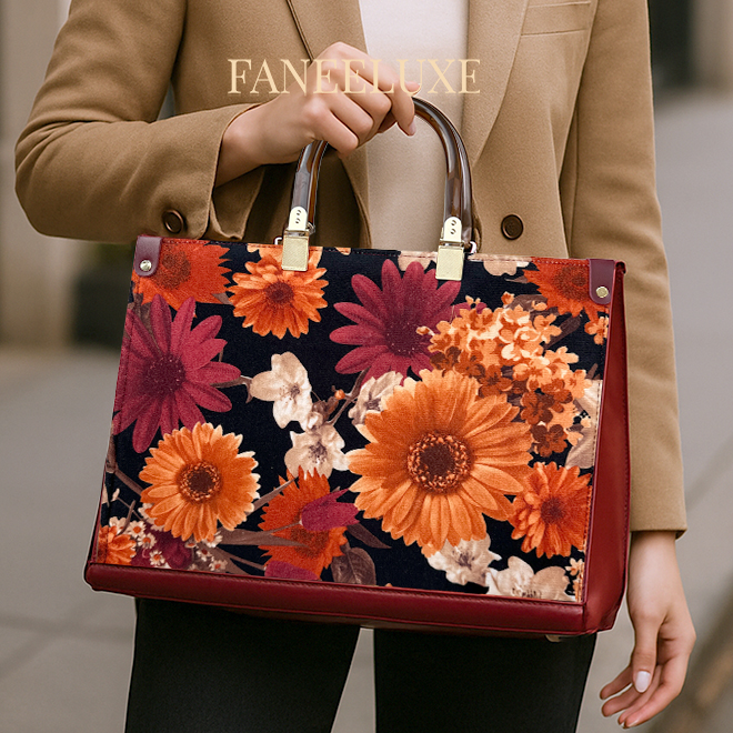 vintage handbag, floral bag, canvas handbag, maroon purse, stylish tote, women's fashion bag, structured bag, vintage floral bag, trendy handbag, Faneeluxe bags